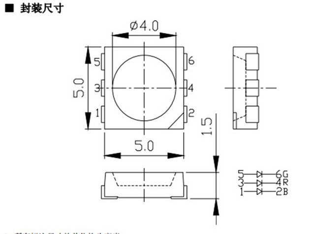 | TM-S5050RGB05YL8-E (1.5W全彩RGB) | Red | AlGaInP | 120° | 1.8 | 2.5 | 10 | 12 | 620 | 630 | 150MA |
