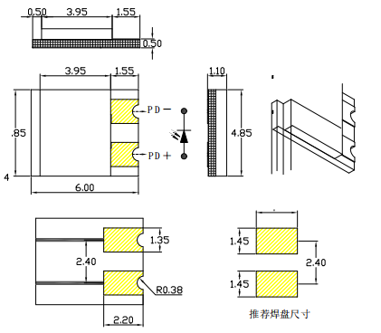 波长:870nm,IrDA数据传输、监控、光电中断器、光电开关、编码器及近距离红外控制应用系统等。