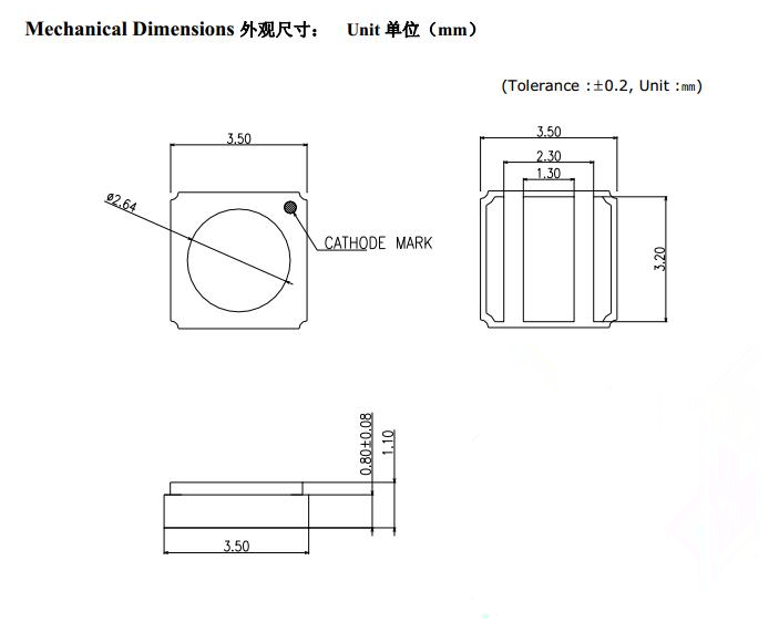 为了确保LED 光电性能,请保持LED 发光区表面清洁,避免手指印或其他异物覆盖。