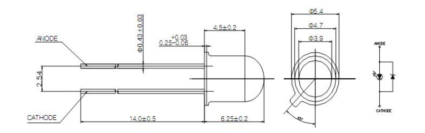 Angle 发光角度 | VF(V) 电压 | IV (MCD) 亮度 | WL(nm) 波长 | IF(MA) 电流 | |||